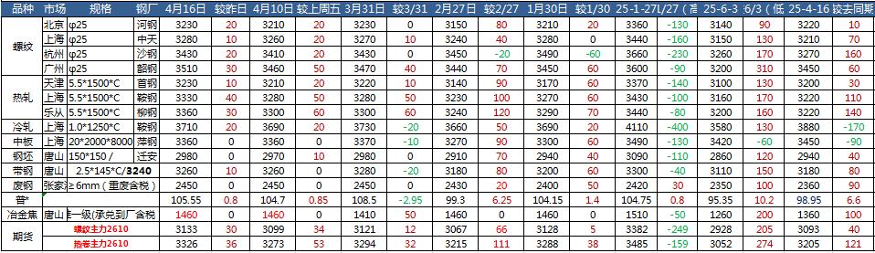 从供应端来看,4 月上旬粗钢产量较上旬继续增长,但钢材产量旬度环比回落,16日唐山限产再度启动重污染天气应急相应,影响一部分产量,短期来看现货市场流通资源供给依旧存在压力,后续市场到货量将逐步收缩。目前钢材库存处于较高水平,市场缺少集中大规模补库动力,大幅囤库行为缺位。下游需求复苏以温和修复为主,难现大幅放量,整体以刚需为主,补库及订货意愿偏谨慎,一方面传统行业处于转型阶段,终端订单结构发生变化;另一方面原料生产成本偏高,持续挤压企业利润,终端普遍严控现金流、规避风险,备货偏谨慎。产业链层面,降本增效成为主线,企业通过产业链协同、物流一体化整合等方式压缩综合成本。市场操作方面期现结合,交易围绕基差逻辑展开,行情运行更趋理性。